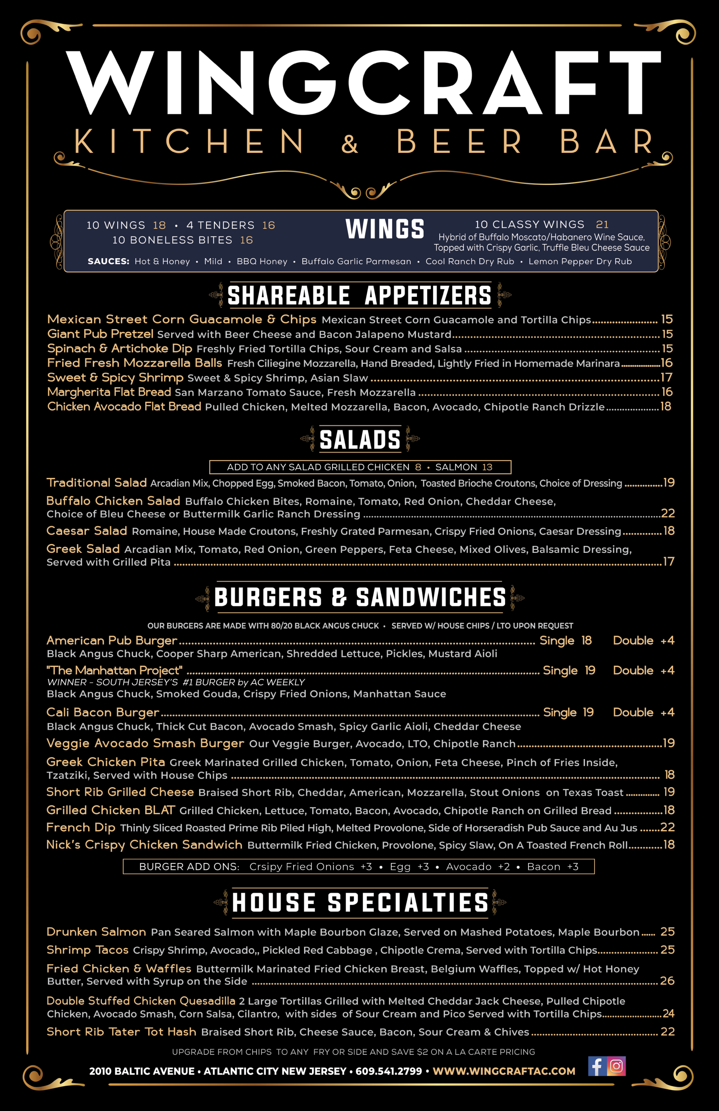 WINGCRAFT Kitchen & Beer Bar opened in June of 2014 and is located inside the Tanger Outlets. Since then, WINGCRAFT has been serving quality interpretations of classic dishes using only the finest ingredients from a select group of purveyors. Our high standards have put us on the list of Top 10 Restaurants in Atlantic City on Yelp, as well as, 10 Hottest Restaurants on the Jersey Shore by Zagat. We earned the #2 Burger in Atlantic City by At The Shore Magazine only 6 months after opening and climbed to #1 Burger in South Jersey, soon after.